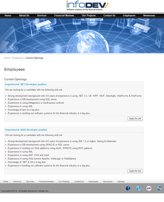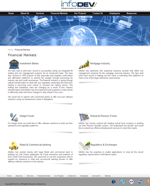 InfoDev was founded in year 2000 in Tarrytown, New York after its founder Kedar Kodlapur decided to focus on providing onsite consulting services for Wall Street firms. As a firm, we brought the expertise in distributed computing and proprietary rules based solutions and offered clients to re-engineer their legacy platforms. Since its existence,InfoDev has helped some of the large financial services firms on wall street in building out trading and risk management systems.